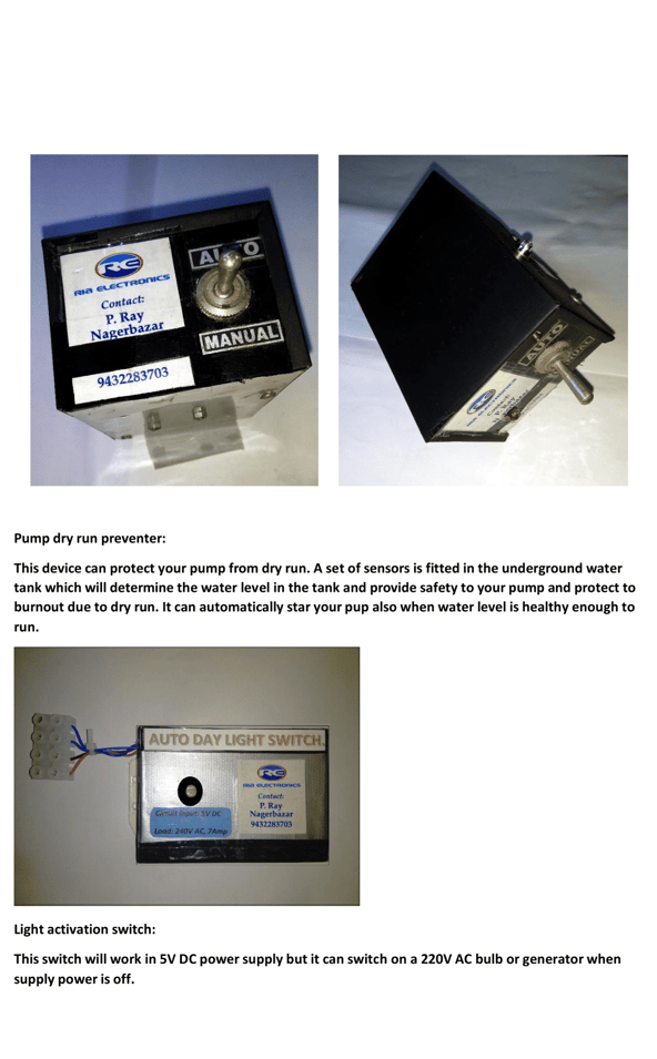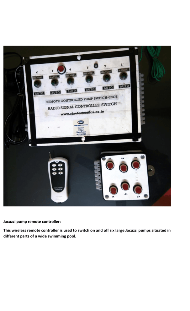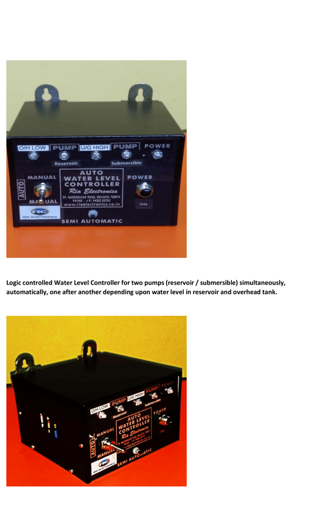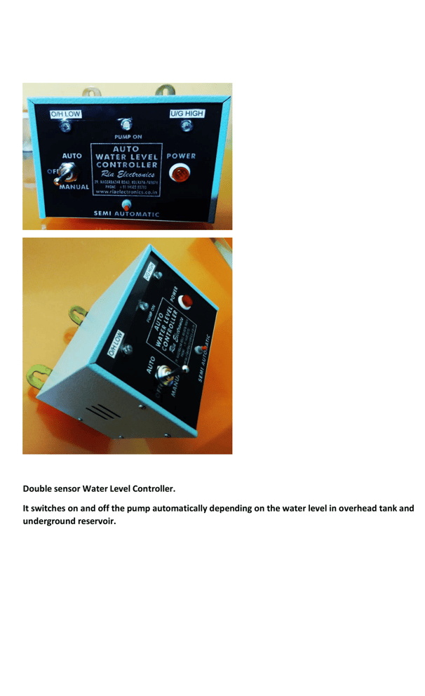 Ria Electronics specializes in manufacturing high-quality electrical pieces of equipment, including different types of water level controllers, smart switches, swimming pool temperature monitoring systems, Jacuzzi pump remote controllers, dry run alarms, pump dry run preventers, timer-based programmable power on-off monitors, security alarms, and CCTVs, all designed to enhance safety and efficiency in your home, workplace, and surroundings.